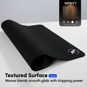 Used versions of this mousepad for years and love it. Nice medium between fast+soft pads. Slightly rough texture with nice stitched edges. Personally wont find a better mousepad for quite awhile
